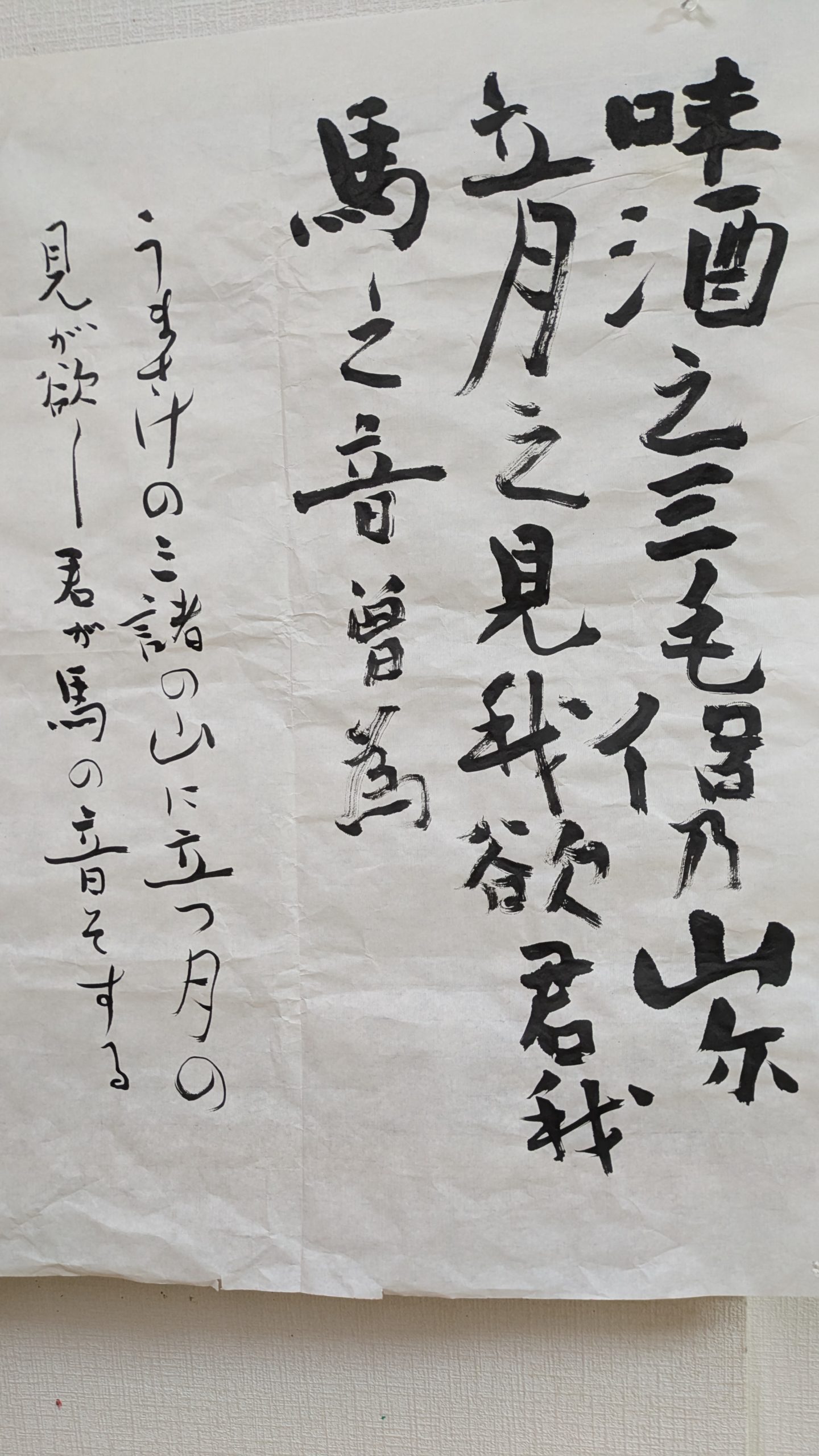 書はカルチャードウ書道教室の小熊日々軌先生作です。
